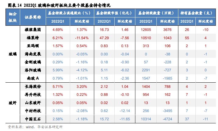玻璃和玻纤:板块配置比例下降,增减持分化加剧