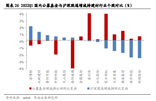 从沪深股通代表的北向资金来看,2022Q1 沪深股通对低估值、安全边际较 高的稳增长链条水泥股加仓,与国内公募基金关注点共识加强;另外,沪 深股通亦青睐经营质量优秀的消费建材龙头。