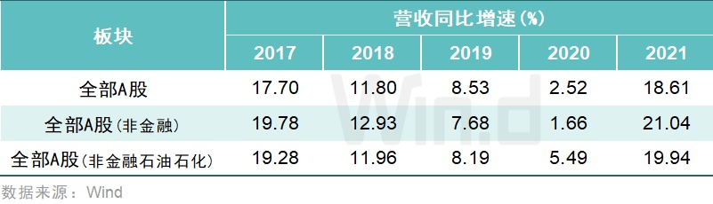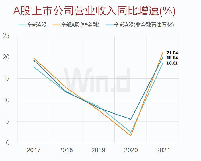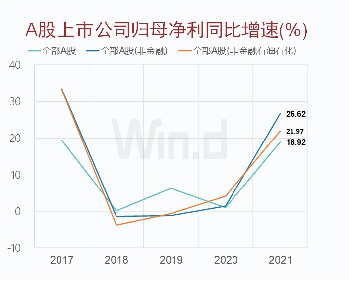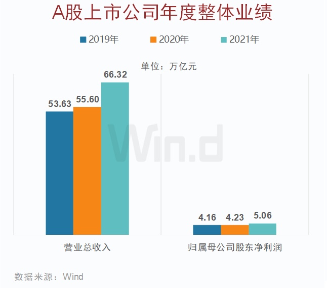 截至4月30日凌晨,A股市场4803家上市公司中共有4794家上市公司披露完2021年年报财务数据,未披露年报的上市公司为9家。21年全年全A营收和归母净利润分别为66.32万亿元和5.06万亿元,同比增速分别为18.60%,18.90%,A股整体盈利增速较2020年大幅提升。从单季度来看,21年四季度全A营业收入和归母净利润分别为18.12万亿元和0.8万亿元,同比增速分别为9.97%和-8.6%。