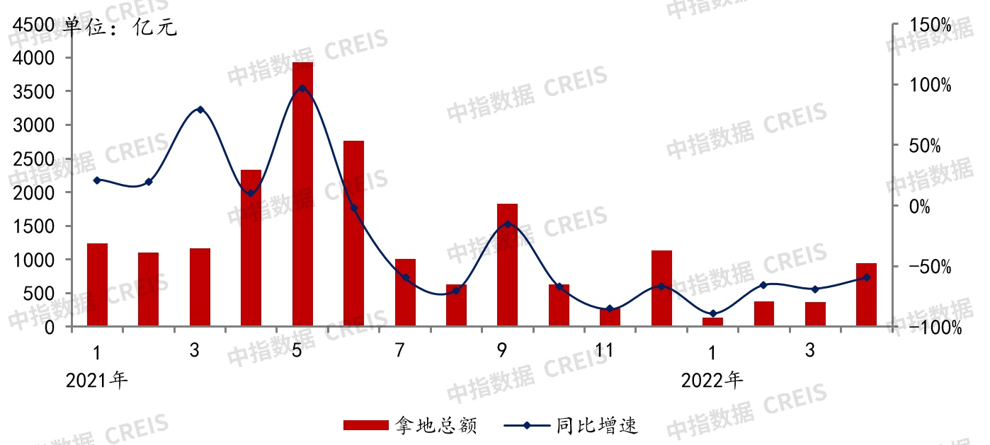图:2021-2022年4月50家代表房企每月拿地总额