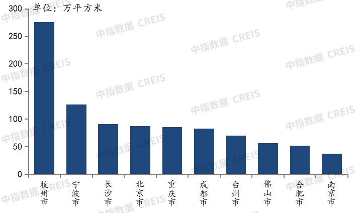 杭州、宁波和长沙位列代表房企拿地面积前三城市。2022年1-4月,50家代表房企拿地面积TO10城市中,杭州位列第一,宁波和长沙占据二、三位置。其中,杭州以275.6万平方米位列第一,宁波以126.6万平方米位列第二。