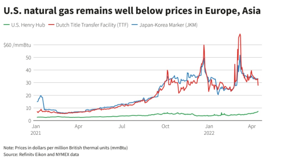 在俄乌局势升级之后,随着全球,尤其是欧洲天然气需求增长,美国天然气产量开始难以跟上市场需求。与此同时,欧洲国家正在寻找新的天然气供应商,以帮助他们摆脱对俄罗斯天然气的依赖。