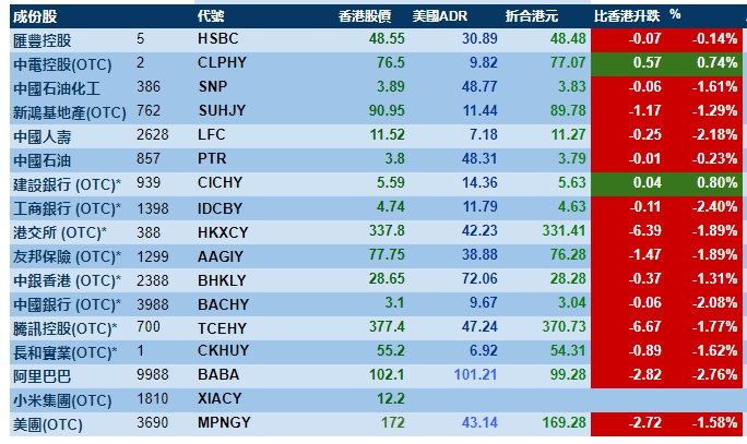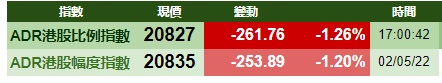 智通财经APP获悉,周二美股三大指数悉数上涨,港股ADR指数下跌,按比例计算,收报20827点,较香港收市跌261.76点或1.26%。