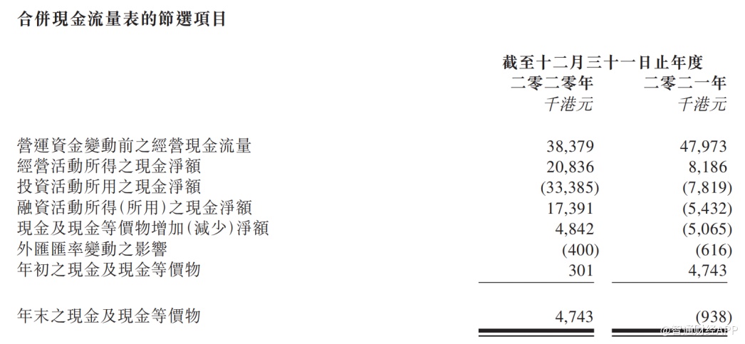 具体到现金方面,2020年,公司年末现金及现金等价物474.3万元。2021年,公司的现金及现金等价物为负93.8万元,公司称主要由于首次公开发售及扩张计划所致的非经常性现金流出所致。