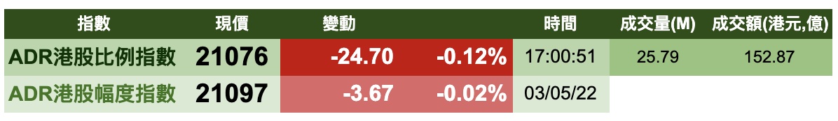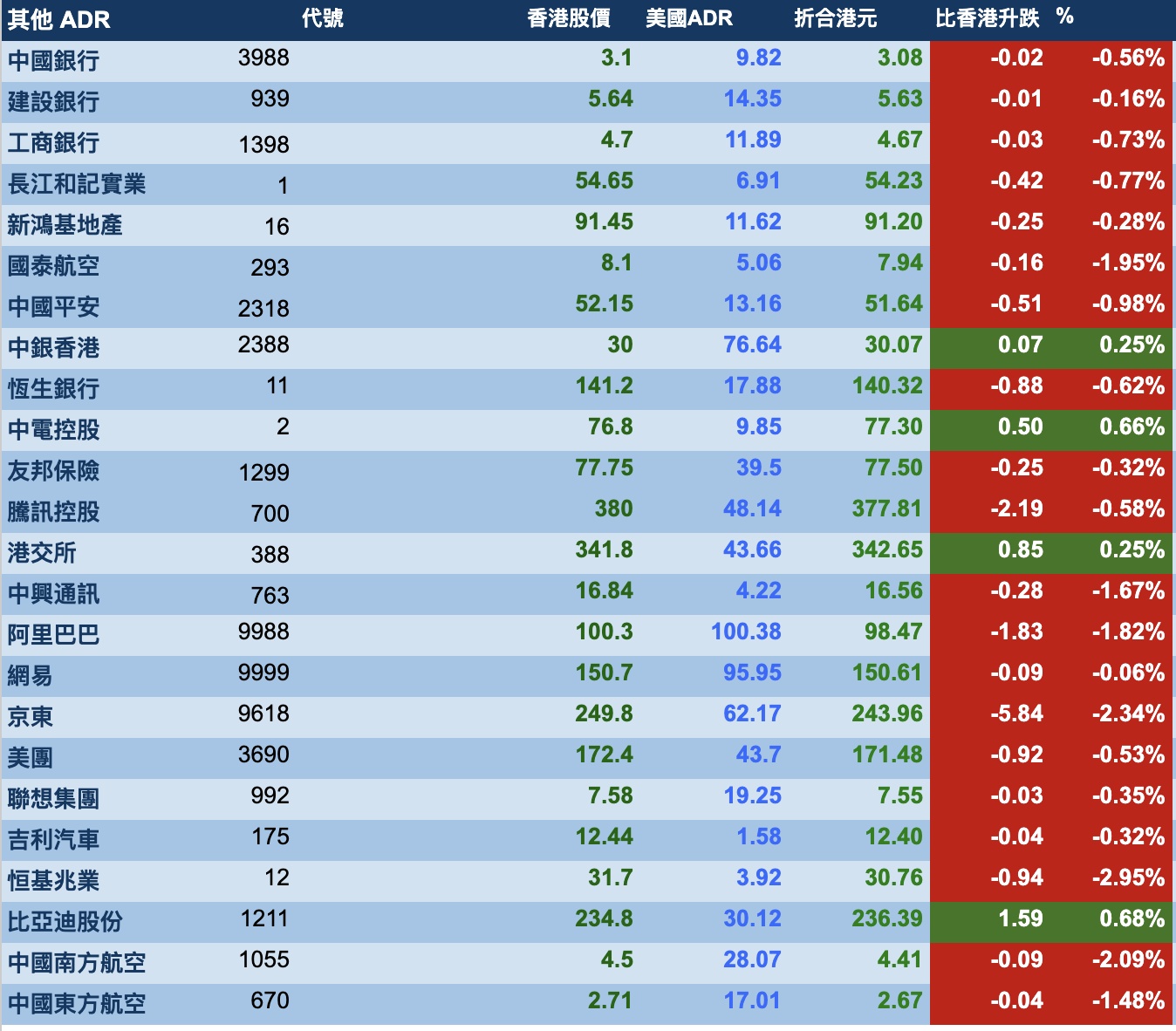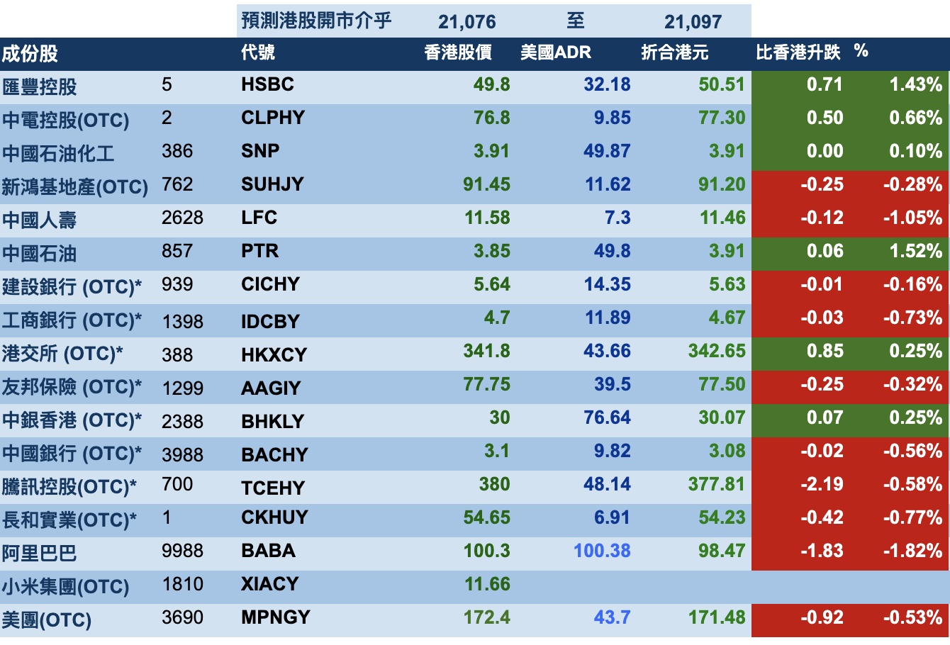 智通财经APP获悉,周二美股三大指数悉数上涨,港股ADR指数下跌,按比例计算,收报21076点,较香港收市跌24.7点或0.12%。