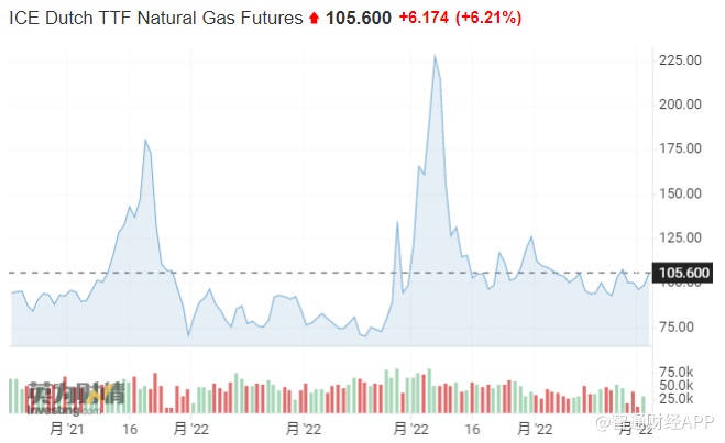 截至发稿,欧洲基准天然气期货价格上涨6.21% 至每兆瓦时 105.60欧元。欧洲基准德国未来一年电力合约价格上涨 5.4% 至每兆瓦时 216 欧元。