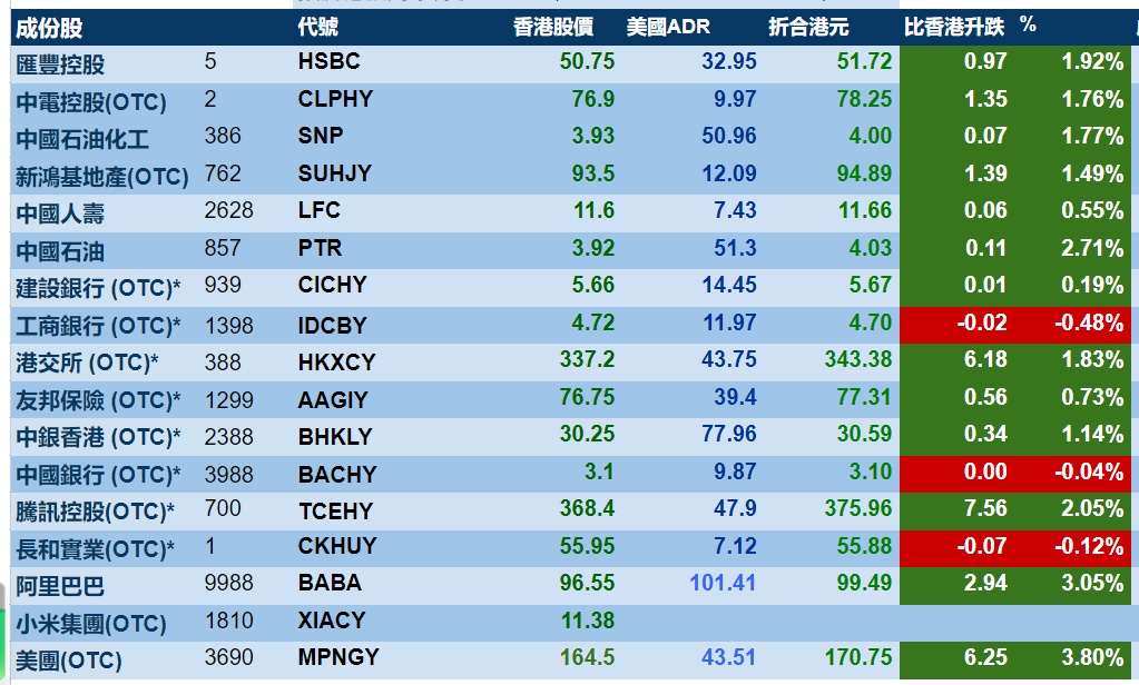 智通财经APP获悉,周三美股三大指数悉数上涨,港股ADR指数上涨,按比例计算,收报21170点,较香港收市涨301.44点或1.42%。