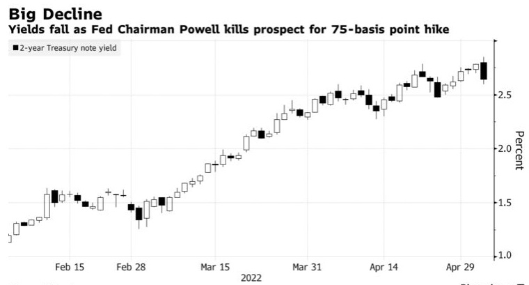 与此同时,两年期美国国债利率一度暴跌18个基点,至略低于2.6%;随后在当天晚些时候回升至2.64%左右,原因是交易员撤出了他们预计今年剩余时间将实施的政策利率收紧措施。 10年期国债收益率下跌近4个基点,至2.93%,彭博美元现货指数下跌0.9%,标普500指数创下10多年来美联储决策日以来的最大涨幅。