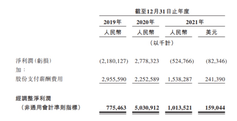 公司于2019年录得净亏损人民币21.80亿元,并于2020年录得净利润人民币27.78亿元,于2021年录得净亏损人民币5.25亿元(8234.6万美元)。
