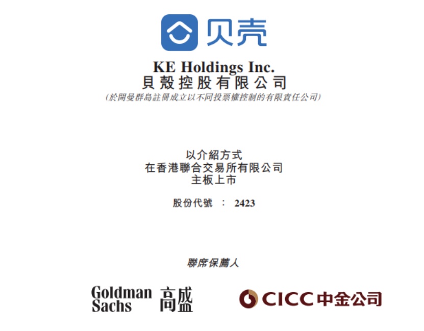 智通财经APP获悉,据港交所5月5日披露,贝壳控股有限公司(贝壳-W,02423)以介绍方式在香港联合交易所有限公司主板上市,高盛和中金公司为其联席保荐人。