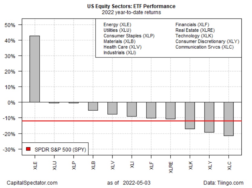 与此同时,美股其他板块的涨幅远不如能源股,最为接近的是公用事业和日常消费品这两个受益于当前环境且相对安全的板块,SPDR公用事业精选行业指数ETF(XLU.US)和SPDR日常消费品精选行业指数ETF(XLP.US)今年以来的涨幅也仅接近2%。截至目前,表现最差的是通信服务板块,SPDR通讯服务精选行业指数ETF(XLC.US)今年以来跌幅超过18%,几乎是标普500指数ETF(SPY.US)跌幅的近两倍。