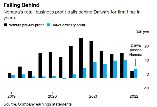 Ban表示,这一逆转表明,大和证券在建立稳定的零售收入来源方面略微领先于野村证券。