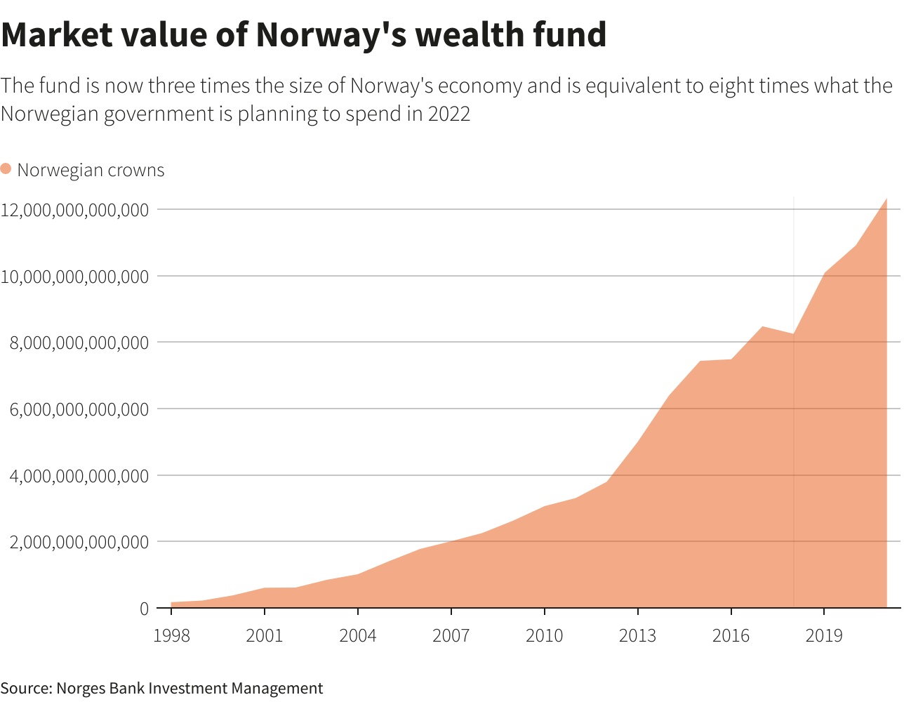 据悉,4月21日,挪威央行投资管理公司(NBIM)在其官网的一份声明中表示,2022年第一季度,挪威主权财富基金亏损740亿美元,这是这个全球最大规模的主权财富基金自2020年以来首次出现季度亏损。