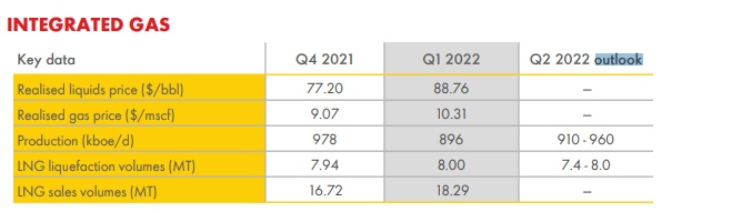 按业务划分,壳牌Q1一体化天然气业务调整后利润为40.93亿美元,2021年Q4为40.36亿美元,上年同期为15.7亿美元;上游业务调整后利润为34.5亿美元,2021年Q4为28.38亿美元,上年同期9.33亿美元;