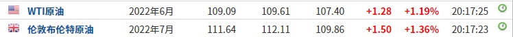 3. 截至发稿,WTI原油涨1.19%,报109.09美元/桶。布伦特原油涨1.36%,报111.64美元/桶。