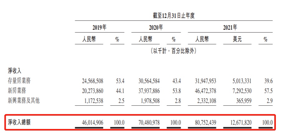 据招股书数据显示,营收方面,贝壳的营收增长速度已从过去的“高增长通道”步入“缓增长状态”——其净收入由2019年的460亿元增加53.2%至2020年的705亿元,并进一步增加14.6%至2021年的808亿元。从53.2%到14.6%,其净收入增速的放缓显然透露出其目前的增长瓶颈。