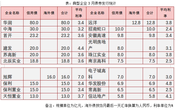 四、企业融资动态:华润发行额度最高,招商蛇口融资成本最低