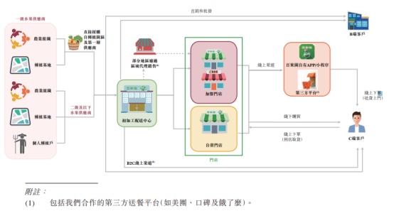 公司已建成一个全国性的贴近社区、线上线下一体化及店仓一体化的水果专营零售网络。截至2022年4月20日止,公司在中国22个省市超过130个城市共有5,351家门店,多位于居民区、商业街等高人流量区位,并已布局手机APP、微信小程序、天猫、京东、抖音、美团、口碑、饿了么等线上渠道。