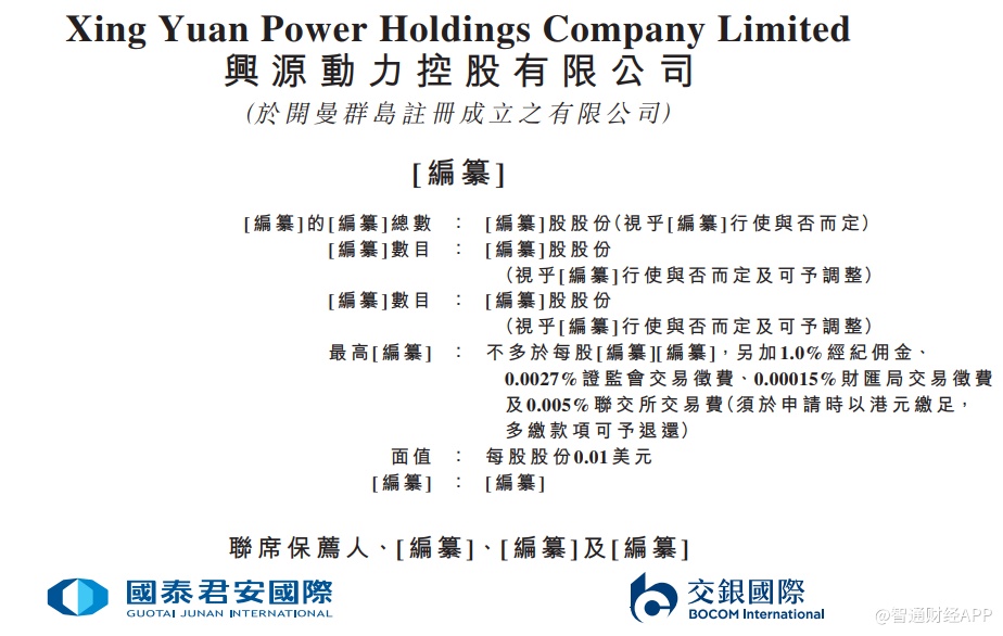 智通财经APP获悉,据港交所5月6日披露,兴源动力控股有限公司向港交所主板提交上市申请,国泰君安国际及交银国际为联席保荐人。该公司曾于去年11月3日递表港交所主板,目前该申请已失效。