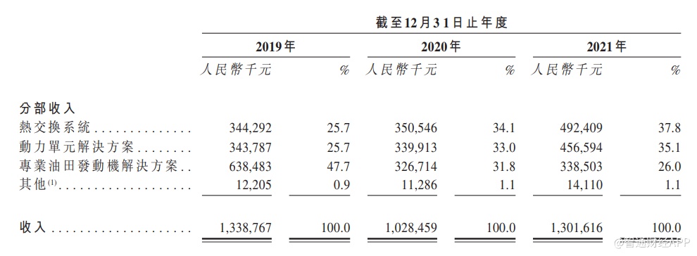 兴源动力主要从事与热交换系统、柴油动力单元及应用于石油及天然气行业的专用发动机相关的产品及╱或服务。按中国2020年收益计,该公司是柴油发电机组应用领域及互联网数据中心领域的最大热交换系统制造商,市场份额分别约为9.4%及17.6%。该公司自制的热交换系统广泛应用于柴油发电机组及工程机械等相关领域。公司同时是中国领先的柴油发电机组解决方案供货商,专注于柴油动力单元,按2020年收益计,公司在中国柴油发电机组解决方案市场名列第三,市场份额约为4.4%。