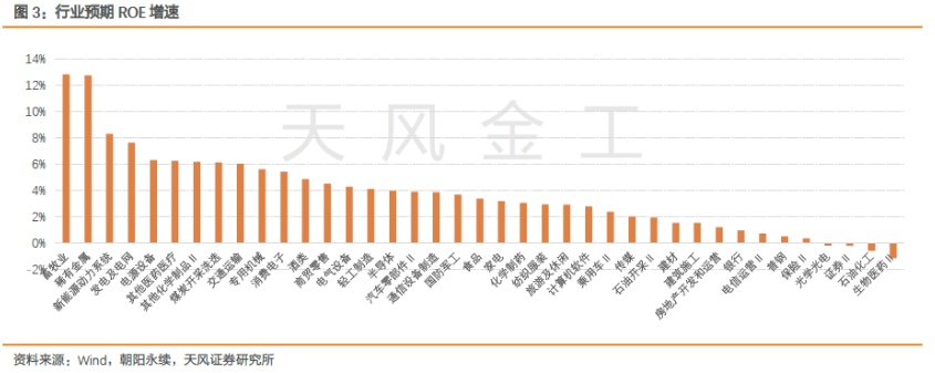 下图为当前行业预期ROE增速及相对于一个月前的变化。