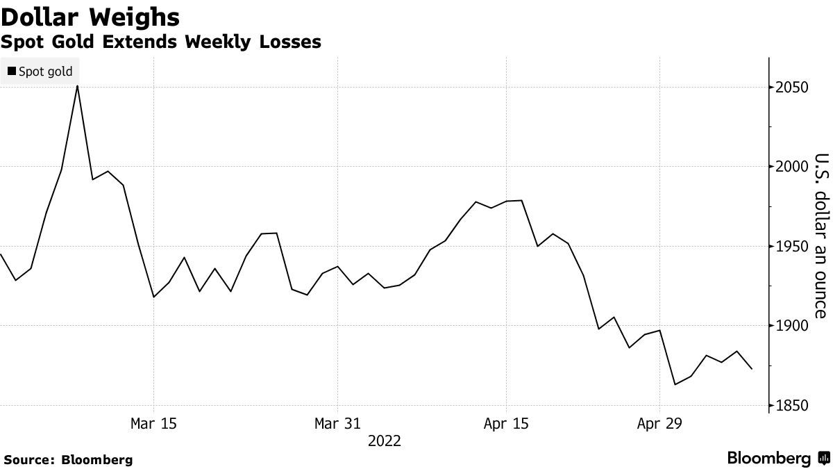 自4月中旬以来,随着市场普遍预计美联储及全球各大央行将大幅收紧货币政策,金价一直处于下滑态势。而在这一预期之下,10年期美债收益率已站稳3%水平,更加值得注意的是,影响金价的关键因素之一美元指数已实现连续五周上扬,这使得黄金价格近期不断承压。