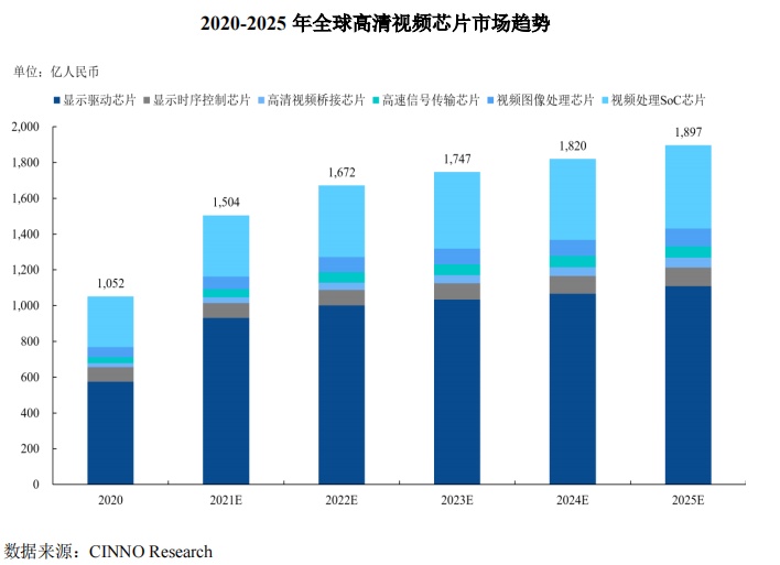 而国内市场在国产替代化趋势下,预计2025年中国大陆高清视频芯片市场规模将达到969亿元,2020-2025年复合增长率约15.7%。