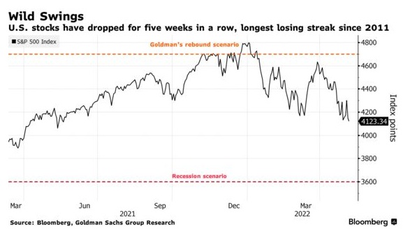 高盛今年已两次下调年底标准普尔500指数的目标,该行最新的预测为4700点。