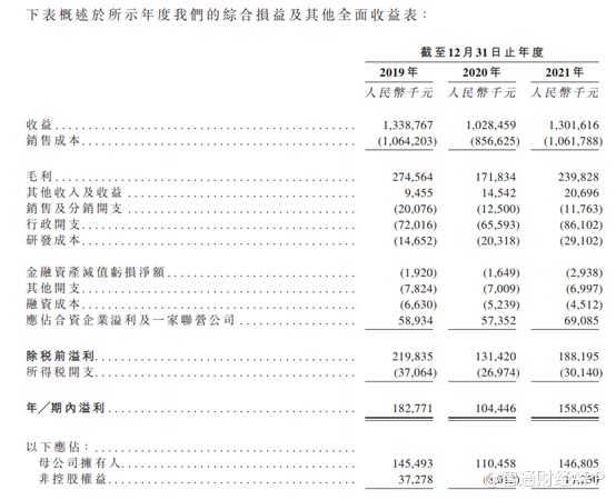 从业绩来看,截至2019年、2020年以及2021年12月31日止年度,兴源动力的收入分别为人民币(单位下同)13.39亿元、10.28亿元以及13.01亿元。同期,公司归母净利润分别为1.45亿元、1.10亿元以及14.7亿元。