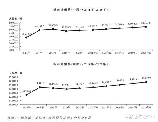 不过由于柴油动力单元和电子调速系统的主要原材料为铜和铝。热交换系统的生产也很大程度上依赖铜及铝制成的部件,例如热管和鳍板,因为它们具有高延展性、导热性和耐腐蚀性。而铜与铝的价格是众多大宗商品中价格相对坚挺的品种。2020年铜及铝的年均市场价格分别为48780.6元/吨和14166.5元/吨。沙利文预计2025年中国铜及铝的年均市场价格将继续上涨,分别增至54173.6元/吨和15732.7元/吨。