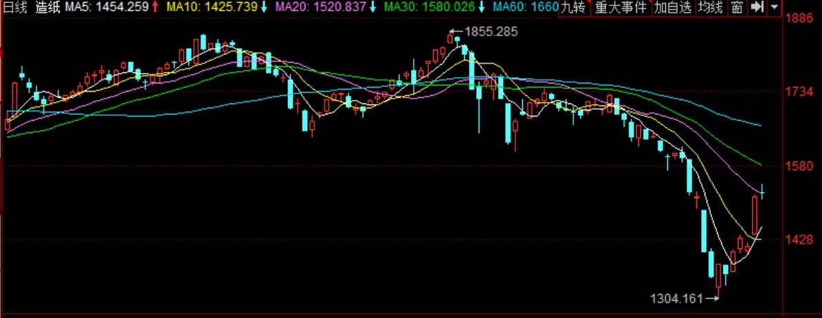 A股方面,5月9日,在上证指数围绕3000点拉锯、微涨0.09%的背景下,造纸板块大涨7.29%,一举成为市场上最“靓”板块,博汇纸业、景兴纸业、美利云等近10只概念股涨停;截至10日,造纸板块涨势延续,收涨0.34%,而个股宜宾纸业涨停,岳阳林纸涨超6%、美林云等股票皆纷纷跟涨。