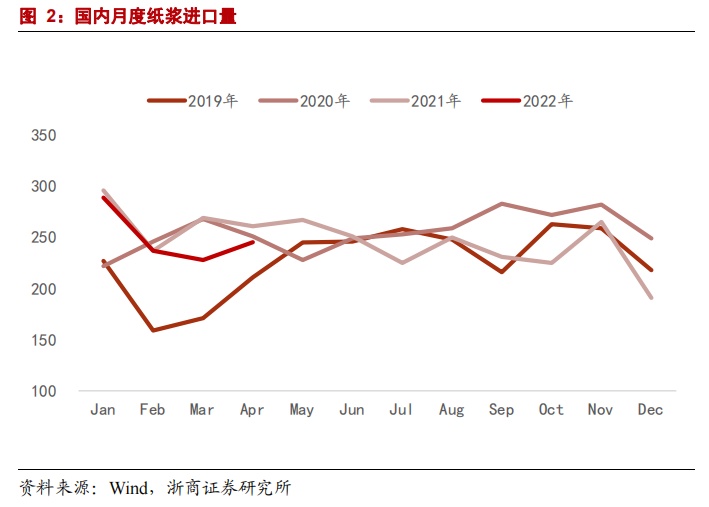 这一表现,亦可以从国内同比有所减少的纸浆进口情况和仅满足刚需的库存状态窥出。