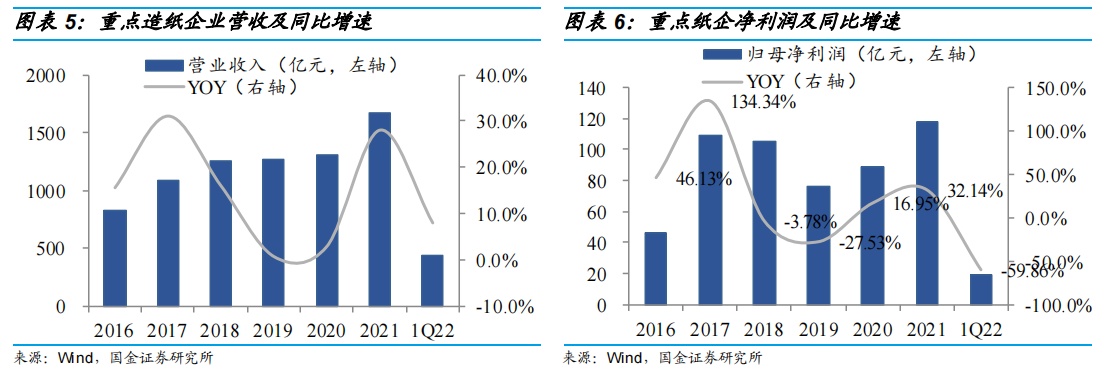 从国金证券跟踪的12 家重点造纸公司业绩数据来看,亦不难发现造纸概念股们目前所面临的增长问题:据悉,2021全年/2022年Q1这12家重点纸企营收增速同比+28.0%/+8%,归母净利润同比+32%/-59.9%。