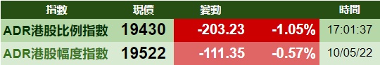 智通财经APP获悉,周二美股三大指数涨跌不一,港股ADR指数下跌,按比例计算,收报19430点,较香港收市跌203.23点或1.05%。
