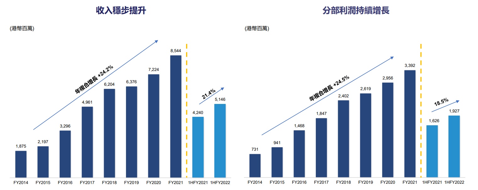 通过财务数据的展示,更能体现中国水务供水业务板块的优质。智通财经APP发现,从2014至2021财年,公司供水业务的收入、净利润的复合增速分别为24.2%、24.5%,而中国水务从2013至2021财年内整体的收入、净利润的年复合增速分别为21%、22.5%。显然,供水业务板块是带动中国水务持续成长的核心推动力。