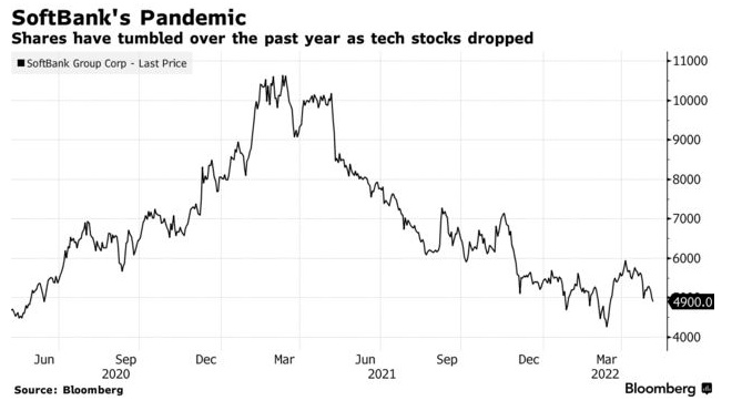 孙正义建立愿景基金,目的是为了挑选出具有前景的初创公司,包括押注中国电商巨头阿里巴巴(BABA.US)这一有史以来最成功的风投交易之一。但即便是这笔如此成功的交易,在如今的市场环境下也失去了光彩。与2020年10月的高点相比,阿里巴巴目前市值已经蒸发了超过70%。
