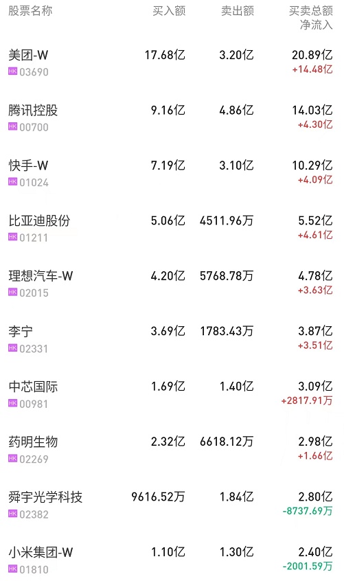 此外,中芯国际(00981)获净买入2996万港元。而舜宇光学(02382)、中国移动(00941)分别遭净卖出8737万、1754万港元。