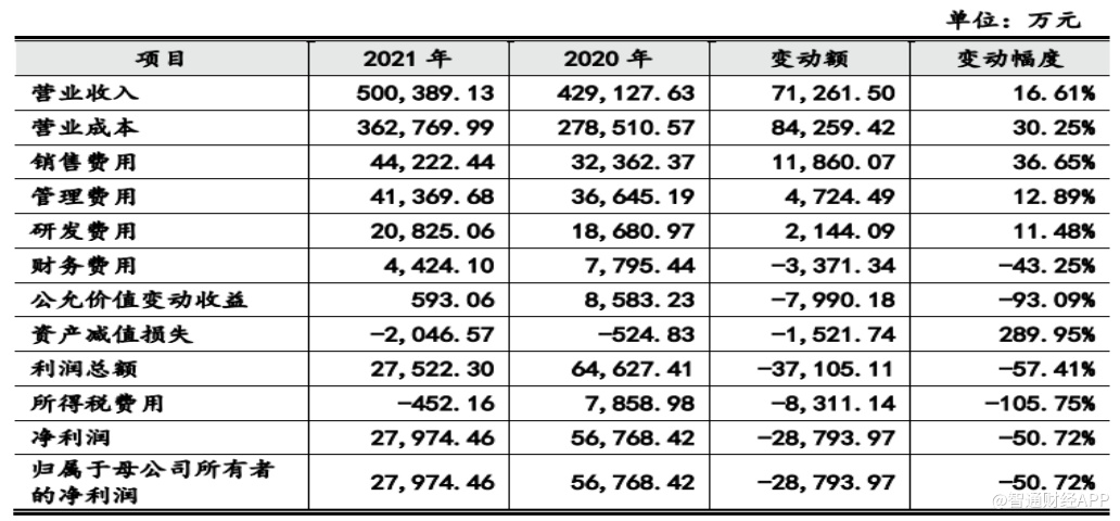 从净利润角度看,格力博在2018年至2021年上半年的盈利表现为,从亏损到扭亏为盈,再到持续增长的过程。但如果把时间至2021年全年,公司的盈利在2021年又经历了大幅下滑的局面。招股书显示,2021年1-12月,格力博营业收入为50.04亿元,同比增长16.61%;净利润为2.8亿元,同比下降50.72%;扣除非经常性损益的净利润为2.36亿元,同比下降41.56%。