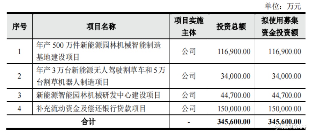 不过,从格力博上市募资意欲大幅提高产能的情形来看,公司似乎并不畏惧未来竞争压力升级。据悉,格力博本次上市拟募资34.56亿元,其中11.69亿元用于年产500万件新能源园林机械智能制造基地建设项目;3.4亿元用于年产3万台新能源无人驾驶割草车和5万台割草机器人制造项目。