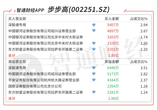 步步高(002251.SZ):龙虎榜阵容豪华,机构席位与游资产生分歧,深股通大单对倒净卖出1039万元,买二和卖二是知名一线游资赵老哥的席位,大单对倒买卖均衡,买四是知名游资苏南帮的席位对倒净买入1039万元,当日买卖均衡,该股调整充分,预计有溢价。