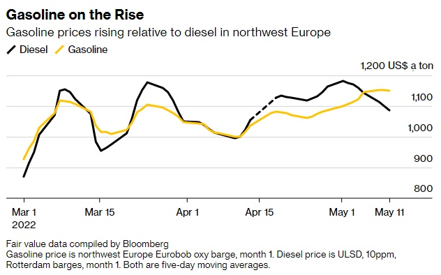 近年来,由于新冠疫情导致消费萎缩,大批炼油厂停产。而随着疫情的消退,需求的再次提升,产能上的缺失加剧了这一局面。此外,在俄罗斯与乌克兰间的冲突加剧后,由于市场担心俄罗斯庞大的能源出口受到干扰,柴油价格飙升。与此同时,美国汽油价格也回升至创纪录水平,两种燃料目前都较原油有较大溢价。