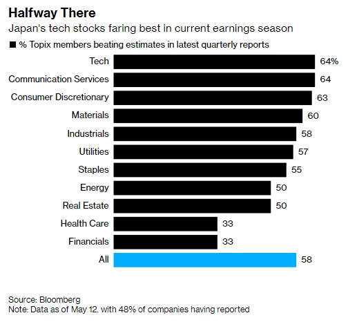 智通财经APP注意到,数据显示,在最新季度财报中,近60%的日本企业收益超出预期,其中科技和非必需消费品公司表现最佳,医疗和金融公司表现落后。但一些投资者担心,随着丰田等公司难以应对原材料成本高企和供应中断,股市因公司获利复苏的趋势可能很快瓦解。