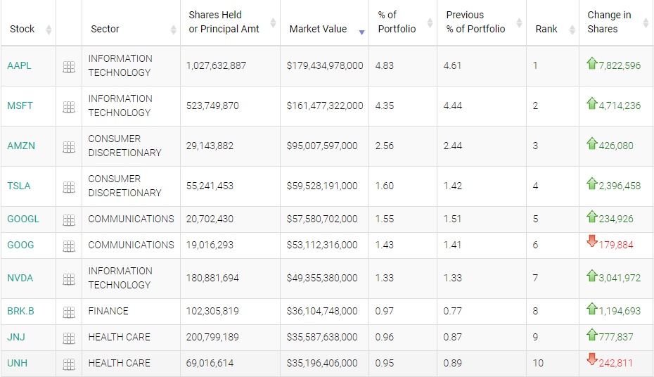微软(MSFT.US)位列第二,持仓约5.24亿股,持仓市值约1614.77亿美元。