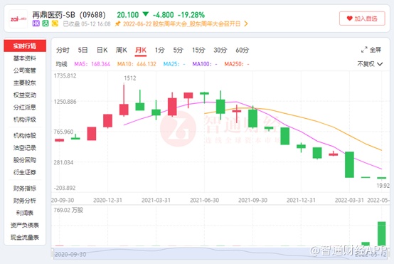 凭借着License in模式,再鼎医药确实比其他药企走的更快些,成立仅4年的时间,便顺利在纳斯达克登陆,并且上市三年,在美股上市的再鼎医药股价更是大涨300%以上,随后公司也顺利在港交所登陆。