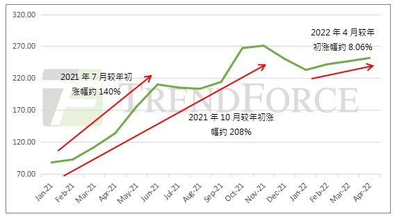 今年以来,硅料价格持续上涨,5月初,硅料价格已涨至259元/吨,逐步接近2021年最高价,目前扩产产能逐步释放,但释放进度不及预期,而进口硅料因海外企业检修维护等影响,数量逐渐减少,且延期严重,供应有限;下游硅片企业在需求预期和价格涨势的支撑下,叠加部分新增产能逐步释放,对硅料的需求提升,造成硅料供不应求的局面,支撑了价格不断上涨,由2021年年初1月均价的87.75元/吨上涨至4月均价的251.5元/吨,涨幅达186%。