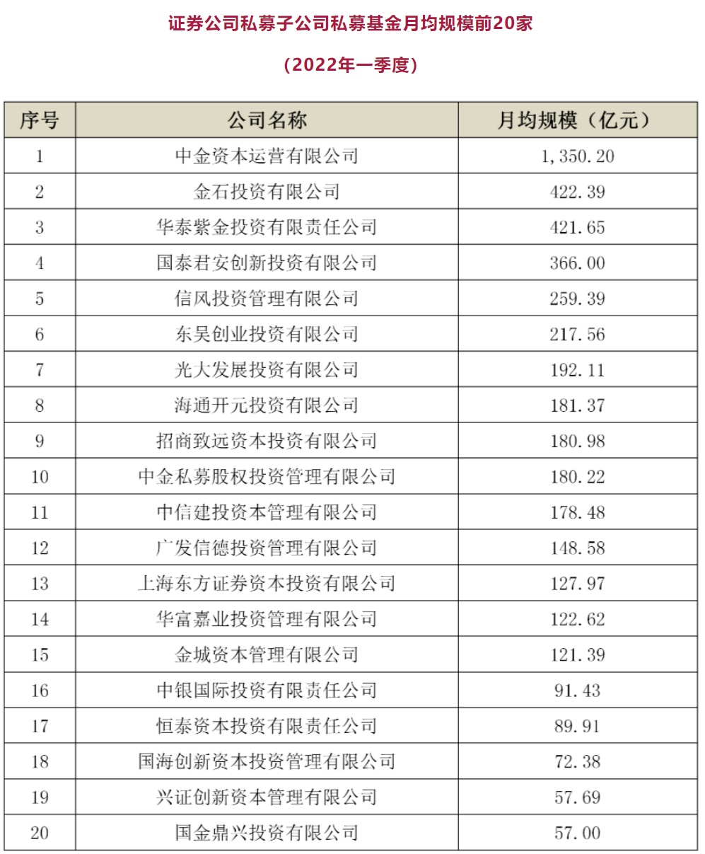 此次券商私募资管规模排名包括证券公司私募资产管理月均规模、证券公司私募子公司私募基金月均规模和企业资产证券化业务月均规模。