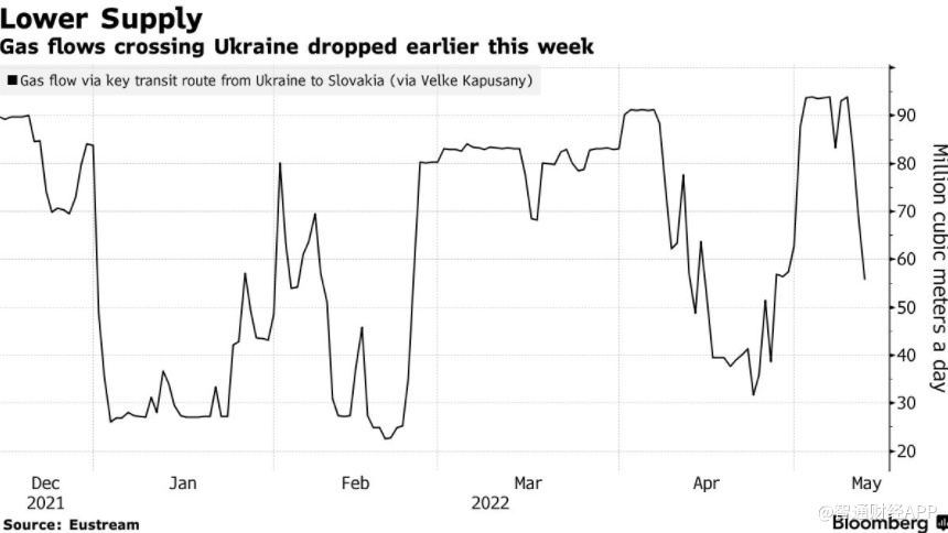 本周俄罗斯经过乌克兰输往欧洲的天然气流量下降