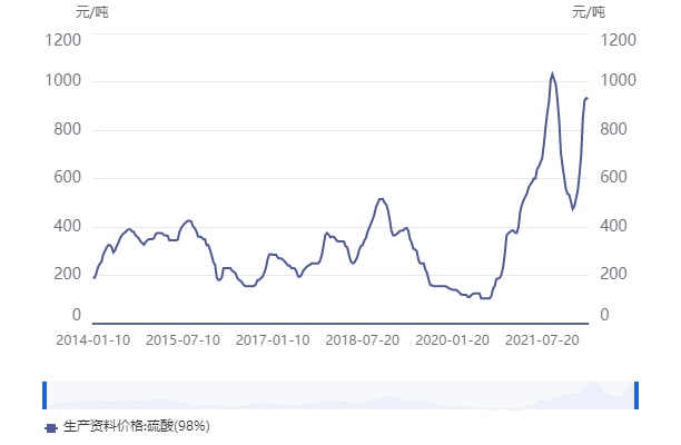 不过“苔花如米小,也学牡丹开”,智通财经APP注意到,过去数月来伴随全球通胀高企,大宗原材料价格普遍上移,而硫磺、硫酸的价格更是扶摇直上。公开数据显示,4月硫磺产业链产品价格调整不一,其价格多数上调,市场价格连续刷新近十年来新高。其中,硫磺长江市场颗粒均价3493元/吨,环比增加6.76%,同比大增146.03%;山东市场液体硫磺价均价在3602元/吨,环比提升21.60%,同比劲增146.29%。