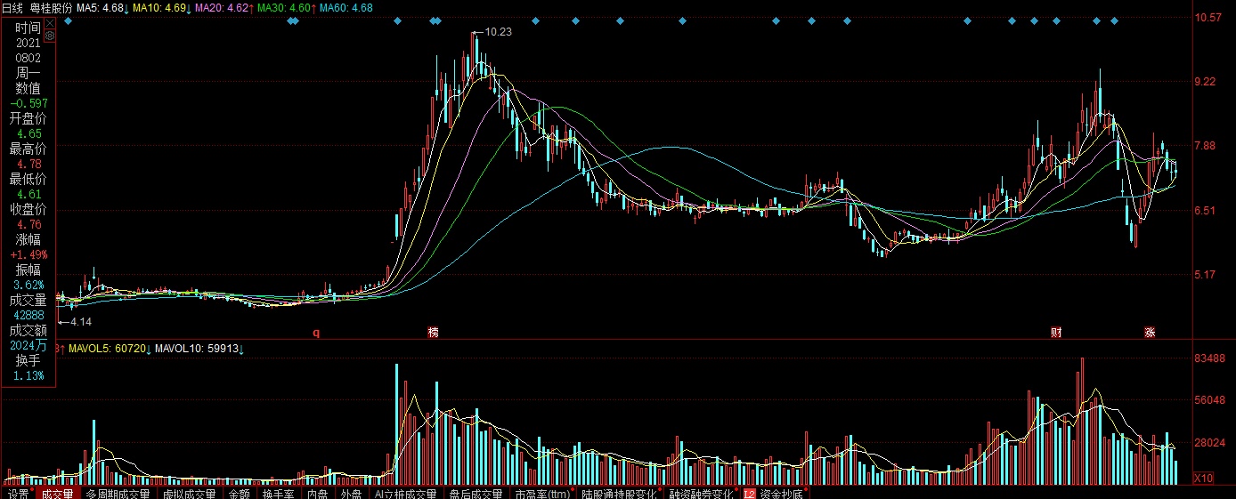 不过,自去年9月开始粤桂股份的涨势便难以为继,此后出现连续的回调。