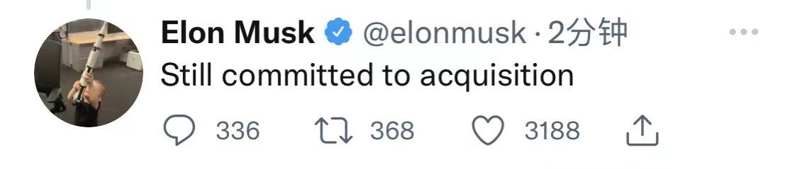 而就在约2个小时前,马斯克才发文表示,收购推特(TWTR.US)的交易暂时搁置,原因是正在等待有关虚假或垃圾账户确实只占用户不到5%的计算的相关细节。